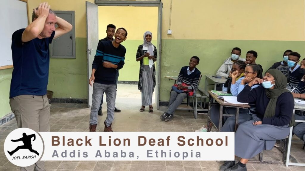Joel visits one of the Deaf schools in Addis Ababa, Ethiopia. The Black Lion High School ( Tkur Anbessa High School) has two buildings for Deaf and hearing students. Joel is surprised to meet some hearing students in the Deaf classrooms with Deaf teachers. All teachers are using sign language as full accessibility for any students. (captioned)